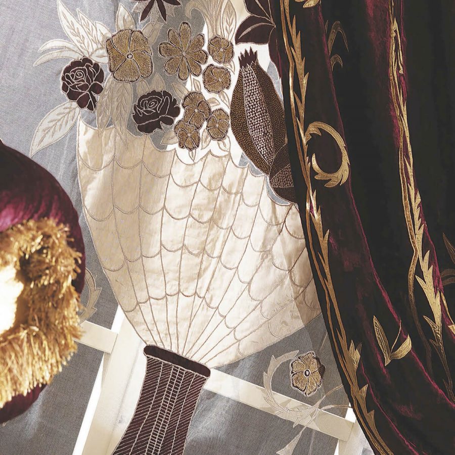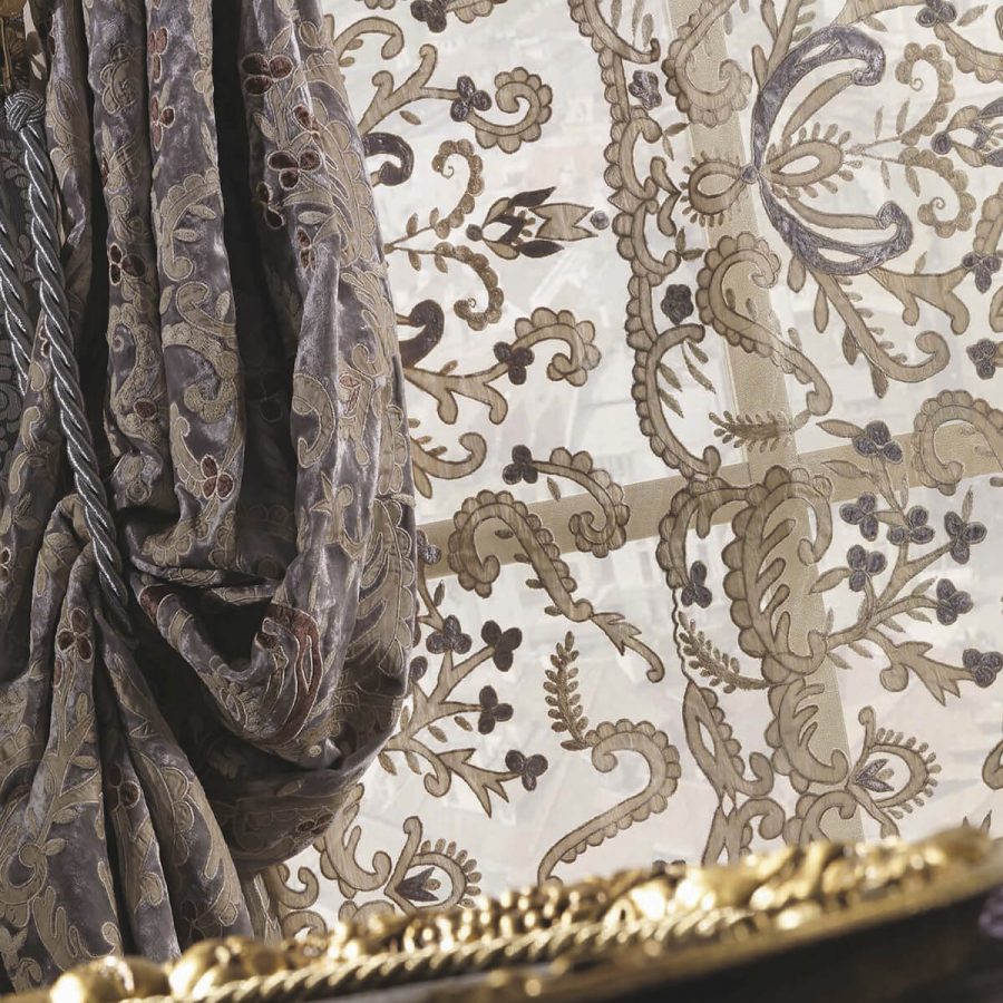La produzione tessile consta di 70 collezioni, con oltre cento varianti di colore disponibili. Nel nostro tessile utilizziamo esclusivamente materiali pregiati quali velluti, sete, voile. Tutte le collezioni tessili sono realizzate prevalentemente a mano, e ciò le rende uniche per stile e valore.